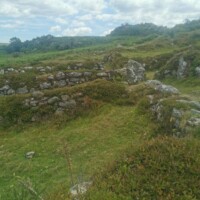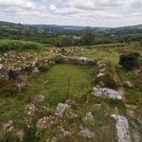 Past the tor, a short walk down the hill you will see the remains of 13th century stone farmsteads. There is a map of the farmsteads available from the English Heritage site (https://www.english-heritage.org.uk/visit/places/hound-tor-deserted-medieval-village/history/) that shows the layout of the area.