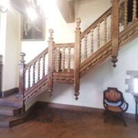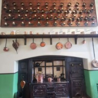 The tour takes you through the Victorian kitchen, complete with an amazing stove and copper cookware. There is a small internal courtyard that leads to the impressive dining room. We were told that the dining room table has been repurposed from the servant’s quarters and there are several names and initials carved into the side of the table. We found a few along the edge closest to the fireplace.