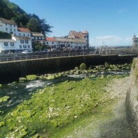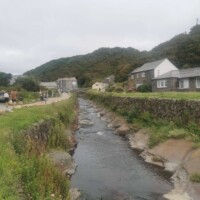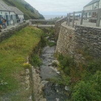 Boscastle. Our last village, before reaching Barnstaple, was Boscastle. We arrived later in the day so the shops were closed, but we enjoyed walking along the river that flows out to the sea. The river walls are amazing, with a cute bridge joining the two sides. We walked along the river to the port opening and sat along the wall enjoying a late afternoon snack – scones with jam and cream of course! After our yummy treat we walked to the other side of the river and continued down the port to the sea opening.