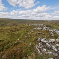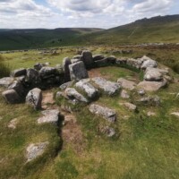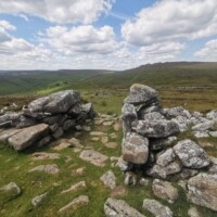 Grimspound. Not far from Hound Tor is Grimspound. This site contains the remains for 24 stone houses with a huge boundary wall from the Bronze Age. This site is similar to the medieval village at Hound Tor, however it is much larger and has a 150m diameter boundary wall all the way around.