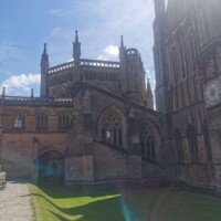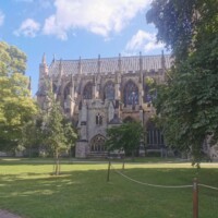 Exeter. After leaving the campus we found a parking spot at a park and ride and took the bus into Exeter city centre. In Exeter there are several different walks around the city centre, usually given by Red Coat Tours, but they were not running due to the current situation. We did find a few of the maps online and did the tour ourselves. At each stopping point there is an information board, so it was a nice way to see the town centre and learn about the history.