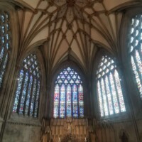 Wells. We started by heading to the cathedral, but before entering we walked around the side and across the street to see Vicar’s Close. This is supposedly the oldest residential street, with original buildings, in Europe. It was built in the mid-14th century and contains Grade 1 listed buildings built for Bishop Ralph of Shrewsbury. There is a chapel and library at one end (north) and a hall on the other over the arched gate (south) – this is the side closest to the cathedral, which is the side we entered from. The south end is connected to the cathedral by a walkway over the road. It’s a beautiful street and worth a look (and a few pictures).
