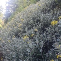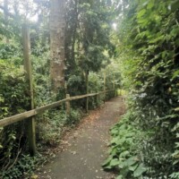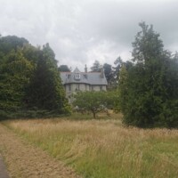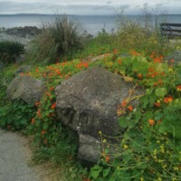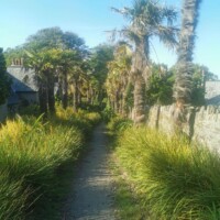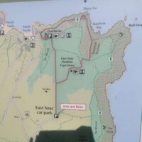 Overbecks Walking Trail. We parked in the East Soar Car Park run by the National Trust and from there we followed the Overbecks trail. The first part of the path went along the airport (we got to see two planes take off) and then walked through a farm field. From there you eventually end up outside the gates of Overbeck, a National Trust garden. The garden was already closed so we carried along the path down the road around the garden walls.