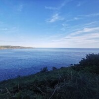 Once we finally reached the cliff edge we were rewarded with beautiful views to the beach area below. There were cliff edges in all directions. It was a bit cloudy the day we went and could just make out a few large ships anchored off the shore.
