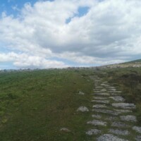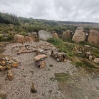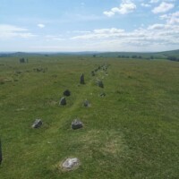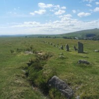 Merrivale Prehistoric Settlement. After Grimspound we went to Merrivale Prehistoric Settlement. You can’t see this settlement from the road, but there is a parking lot nearby and a short walk straight up the hill from the car park will take you to the settlement. Here you will find rows of standing stones and a burial cairns. The stones are laid out in parallel rows with the burial cairns at the end of one of the rows.