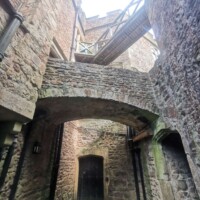 The area around the castle is stunning with the rock cliffs and flowing stream. Near the cliff edge there is an exhibition about the castle and the history of King Arthur. You can visit the exhibition even if you aren’t visiting the castle. The exhibition is free, but we did have to wait a while as they are only letting one family group (of 6 people) at a time. The exhibition is a small room with panels detailing the history and legend. We enjoyed it and thought it was worth the wait.