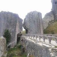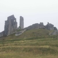 Corfe Castle. The next day we made our way to Corfe Castle (National Trust property). The castle is a ruin, but still extremely impressive. You park at the bottom of the hill in the National Trust signed parking and walk up a path to the castle. The path is an easy, very pleasant walk with great views as you go.