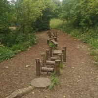 After crossing the bridge there are more grounds to walk through, including an activity area complete with climbing areas and musical instruments (made of wood).