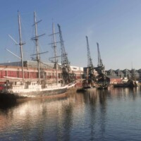 Charlestown. After leaving Eden Project we made our way to Charlestown to see the historic port. The port was beautiful and open to walk around. We grabbed some Cornish ice cream and had a wonder to the water’s edge, enjoying our ice cream and the view. We then had a walk around the port to take a closer look at the ships docked along the port. There were information boards along the walkway to explain some of the history and equipment on display.