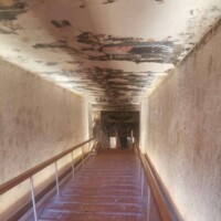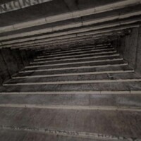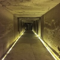 Before leaving Dahshur, we visited the inside of the Red Pyramid. The inside has three funeral chambers. To access the chambers you must climb down a very narrow passageway. At the end of the passageway you enter a chamber with a corbelled roof 40 feet tall. From here, another passage leads into the second chamber. The second chamber is similar to the first and lies directly beneath the apex of the pyramid. High in the corner of the wall is an entrance to the third chamber. You can reach this chamber by a large wooden staircase built for tourist access. In the third chamber you will find that the floor is rough and sunk below the entrance level. It is believed that this was done by robbers searching for treasure.