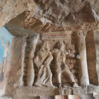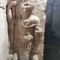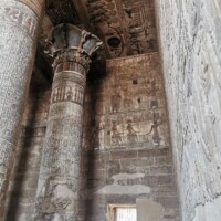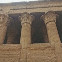 The carvings in the walls show a mix of Roman, Greek, and Egyptian culture. Some statues are Egyptian in style but show Roman clothes and hair styles.