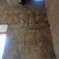 Medinet Habu is the site of the Temple of Amun, the Temple of Ay and Horemheb, and, the most known, Temple of Ramesses III. The Temple of Ramesses III has an imposing 150m (490 ft) long wall built around the entry.