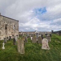 As the cathedral turned to ruin the grounds were used as a cemetery. So around the walls of the cathedral (in what would have been the inside of the cathedral) are tons of grave stones, which is quite unusual.