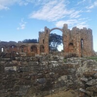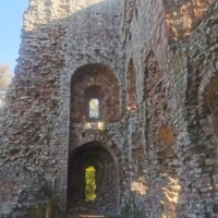 After the museum we walked to the ruins. There is quite a bit to see, a lot of the rooms of the Priory are still visible with low walls remaining. The famous Rainbow Arch is a great site to see – standing high over the ruin grounds.