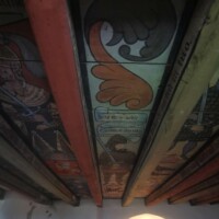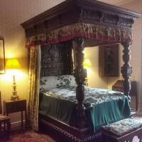 You get to explore quite a bit of the castle, including several rooms with painted ceilings. The walkthrough begins on the ground floor through the kitchen and storeroom. From there you head up the stairs to the bedrooms. The first room you arrive at contains original designs on the ceiling beams. Sometime in the 1800s the owner had the original ceilings touched up – enhancing the colors as well as adding new designs in some places. The ceilings are stunning to look at – I guess it’s nice to see the stunning designs and colors, but a shame that they aren’t fully original.