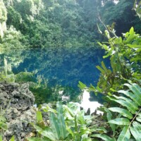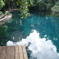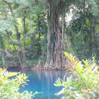 After Port Orly, we headed to a blue hole for more swimming and snorkeling. Again, there was hardly anyone there and felt like we had the place to ourselves. The blue hole was larger than I expected and was an amazing shade of blue. There was a large banyan tree with a swing into the water.