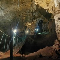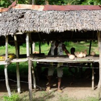 While we were in the cave it started raining heavily, so we tried to wait out the rain, but it didn’t seem to be stopping any time soon. The guide ran outside the cave, chopped down a few elephant ear plants, and brought back the leaves for us to use as umbrellas. It was a fun extra experience – and the leaves made really good umbrellas.
