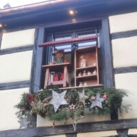 The Turckheim Christmas Market was a smaller market in the area. However, they have a great advent calendar to open each night in December – the “calendar” was three painted house fronts. Each night school children walk down the stairs next to the Town Hall, across the square to the advent calendar where a window is opened to display a special Christmas scene.
