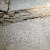Another highlight of the site (there are a lot of highlights) was the Baptistery and its mosaic pavements. The Baptistery has several standing columns that you can view, but the best part is the mosaic pavements hidden under the gravel. You can see a picture of the mosaics on a board displayed nearby. Every few years the gravel is removed, and the mosaic can be viewed. We will be returning sometime when the mosaics are open for viewing – they look amazing.