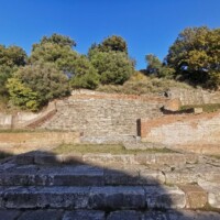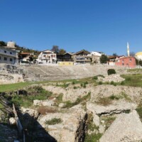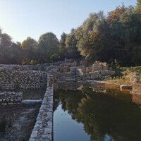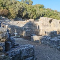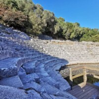South of Saranda is the archaeological site of Butrint. Butrint is a UNESCO site, that was inhabited from prehistoric times, including the site of a Greek colony and a Roman city. We enjoyed walking around the ruined structures, including a theatre, forum, city walls, and an old well.