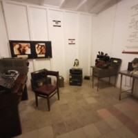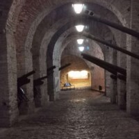 Near Cerciz Topulli Square, and partially under the castle is the Cold War Tunnel. The tunnel can only be visited by a tour guide. If you head to the Cerciz Topulli Square you will see the white building (with tourist info in the building) behind the Topulli statue. To the left of that building (and a bit in front) is a woodshed. Inside the shed you will find the tour guides for the Cold War Tunnel. We just walked in and asked if anyone was available to give us a tour, and luckily they were and took us straight into the tunnel.