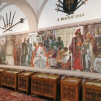 The upper floor is beautifully decorated. The woodwork and paintings on the walls are stunning.