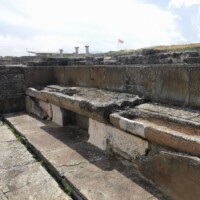 The site is larger than it looks from the parking lot and there are some amazing things to see. The highlight is by far the mosaic floor in the basilica, complete with marble columns. There are lots of other mosaic floors within the site as well. Another highlight is the public fountain (sink). I don’t know why, but I’m fascinated by ancient plumbing (strange I know), so the huge sinks with metal taps made me very happy.