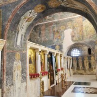 We parked our car near the port and then spent the afternoon wondering around the old town. The parking near old town requires payment. You can pay by SMS if you have a local phone number with payment source for parking, otherwise (as we did) you need to find a worker selling parking passes. Once we sorted out parking, we started by visiting the Church of Saint Sophia. We didn’t know what to expect, but it was only a couple euro to enter, so we went inside, and it was worth it. The inside was covered in beautiful frescos.