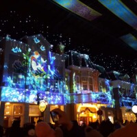 As we were leaving the park we walked down the Tokyo version of Main Street. It’s a covered walkway that features the store fronts. They had a Christmas theme projection displaying on the buildings. It was a nice way to leave the park.